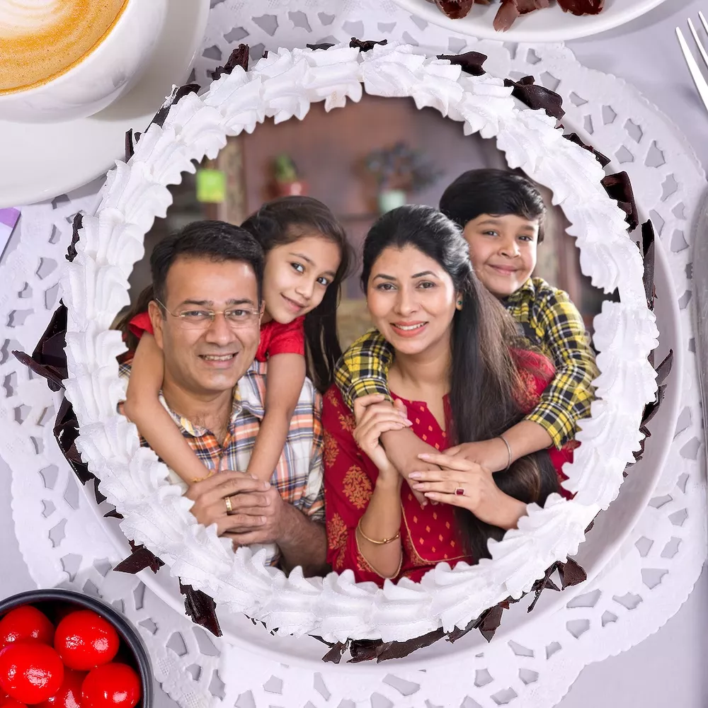 Product Details: Cake Flavour: Black Forest Shape: Round Type of Cake: Cream Type of Sponge: Chocolate Type of Cream: Vanilla Filling in Layers: Cherry Toppings: Cream, Chocolate, Chocolate Flakes & Red Cherries Garnish Care Instructions: Store cream cakes in a refrigerator. Fondant cakes should store in an air-conditioned environment. The cake should consume within