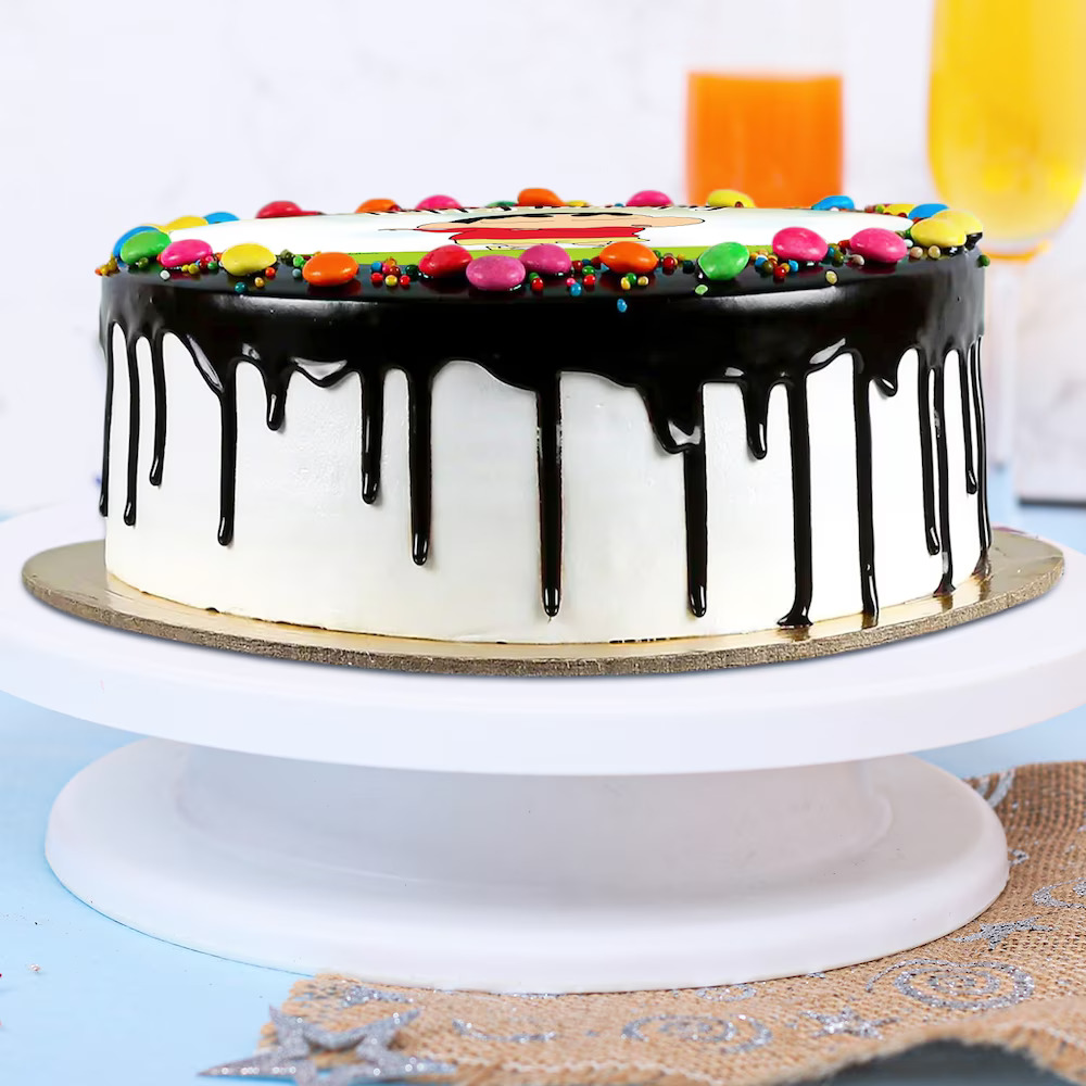 Product Details: Cake Flavour: Pineapple Shape: Round Type of Cake: Fondant Type of Sponge: Vanilla Type of Cream: Vanilla Filling in Layers: Pineapple Crush Toppings: Fondant Garnish Care Instructions: Store cream cakes in a refrigerator. Fondant cakes should store in an air-conditioned environment. The cake should consume within 24 hours. Slice and serve the